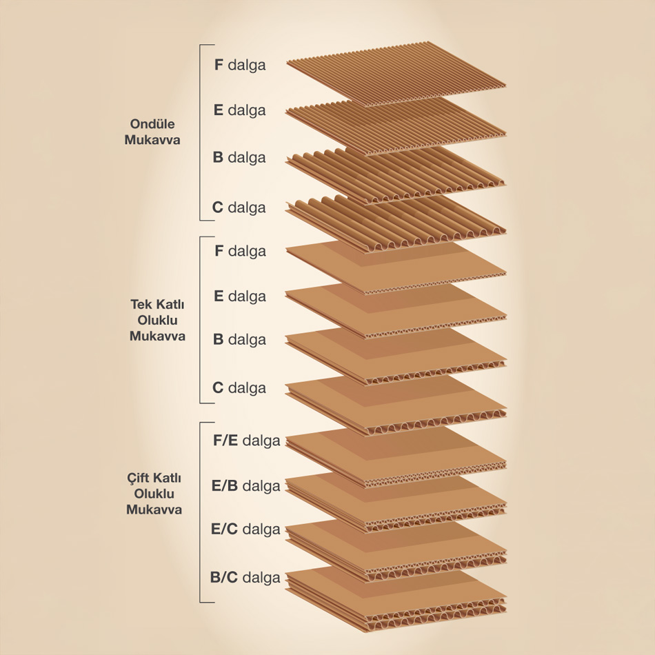 Oluklu mukavva katman sayısına göre çeşitlerinin yanında dalgaların yapısına göre de farklılaşır.
